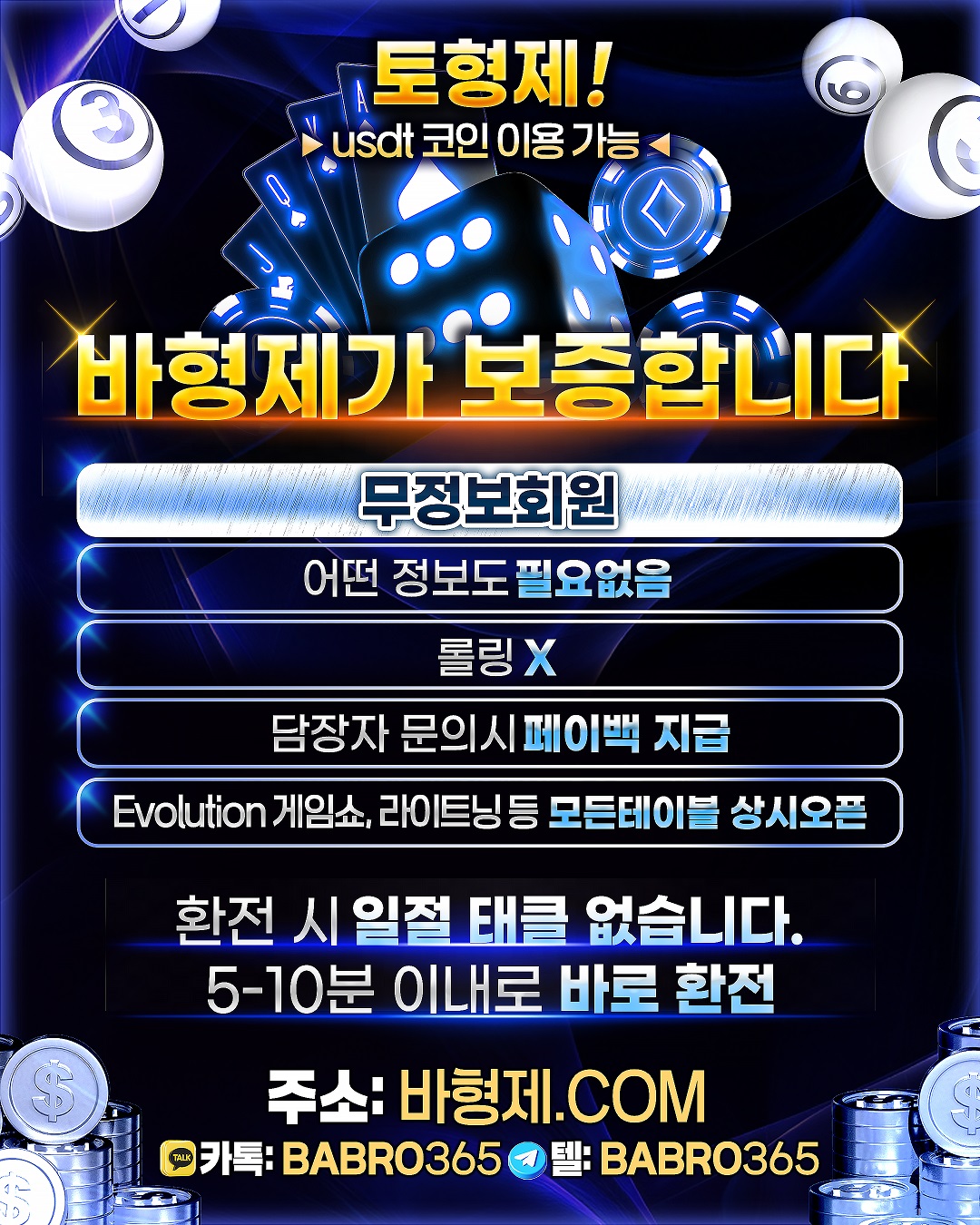 + 빠른 충&환 / 무제재 / 테더(USDT) 이용 가능